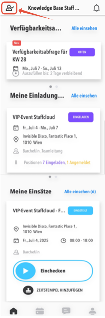 Du hast mehr als einen Arbeitgeber, der mit Staffcloud arbeitet? Kein Problem, du kannst dich innerhalb der App mit all deinen Arbeitgebern verbinden: