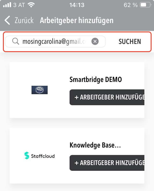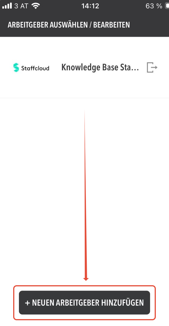 Tippe auf + Arbeitgeber hinzufügen von jenem Arbeitgeber, mit dem du dich verbinden möchtest