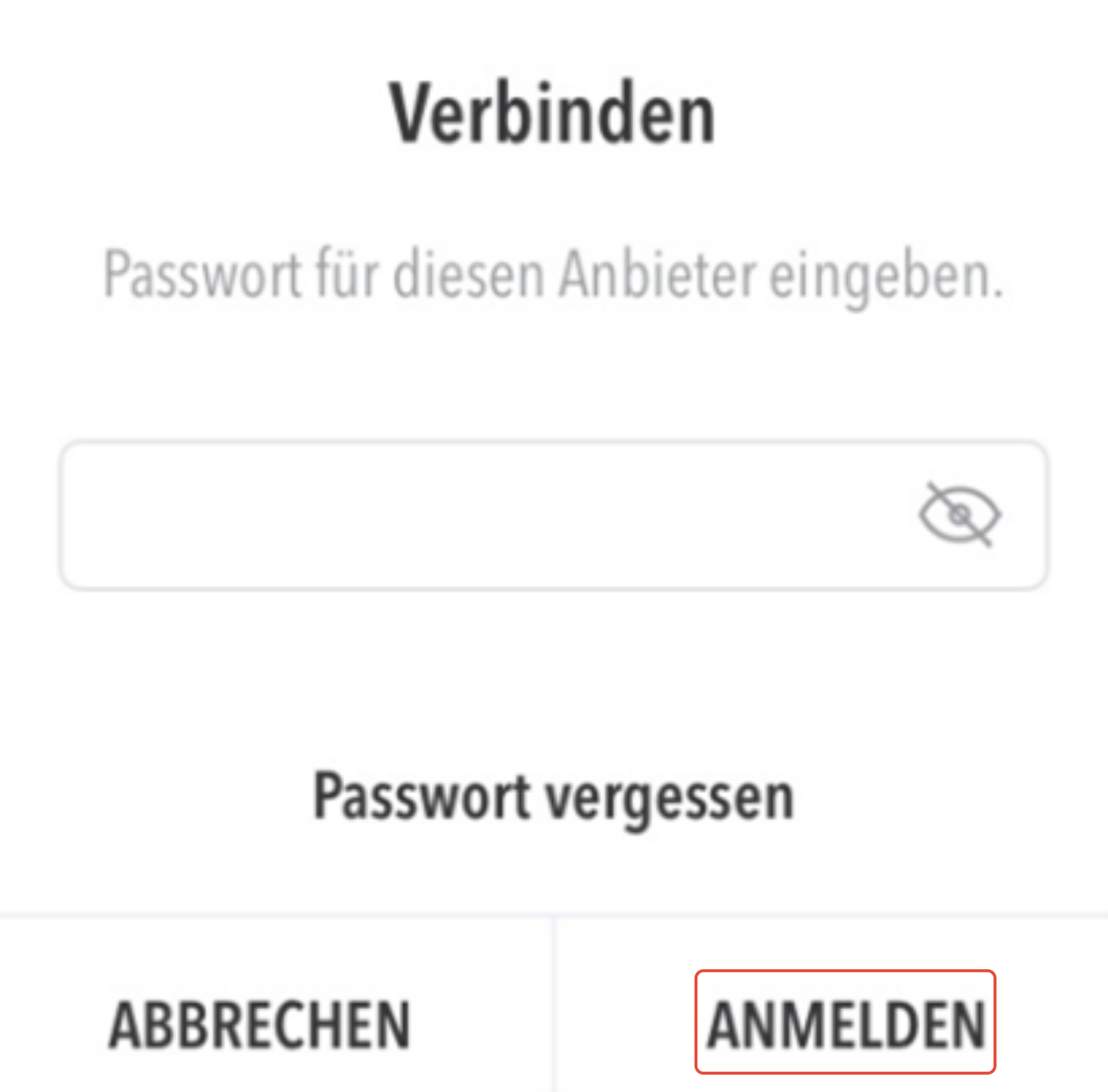 Gib dein Passwort ein und bestätige dieses mittels des Button 'Anmelden':